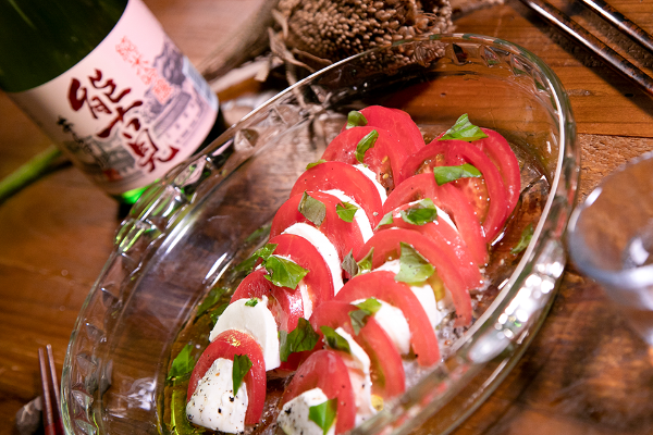 トマトのフレッシュさ、チーズのクリーミーさには、フレッシュな山田錦の味わいを楽しめる『あらばしり』がマッチします。